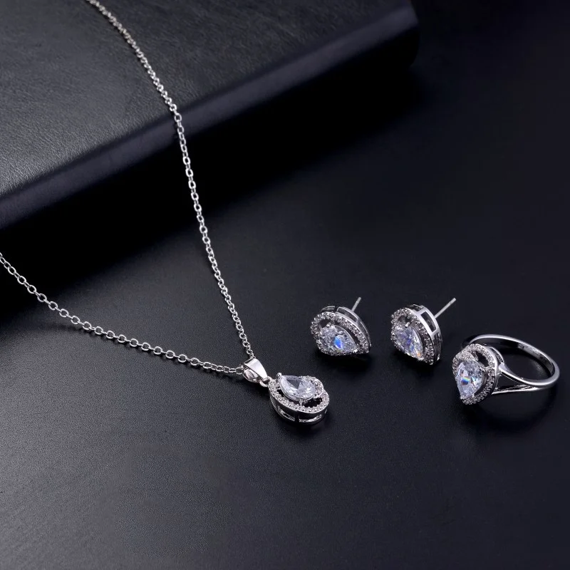 Best Seller 3pcs Fashion Trendy Lady's Jewelry Sets Copper Zircon Jewelry Necklace+ Earrings+Ring #231