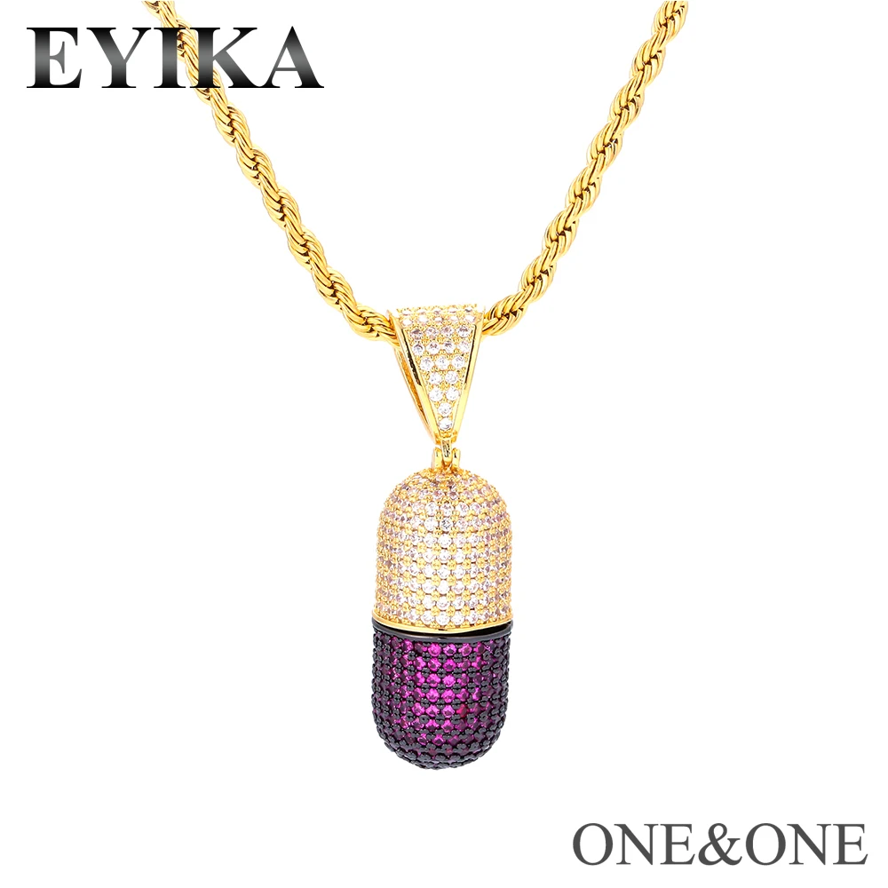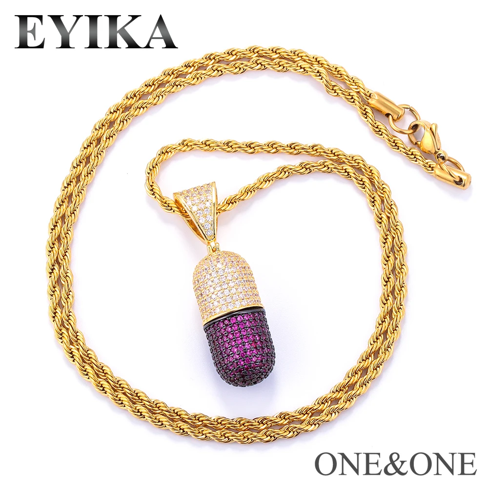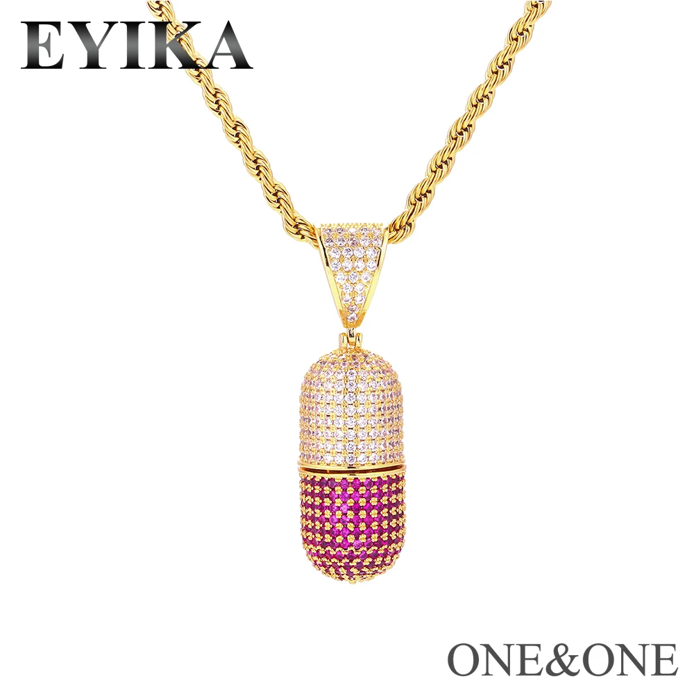 Hip Hop Capsule Pendant Necklaces Fashion CZ Jewelry with Men Stainless Steel 60cm Cuban chain/Rope