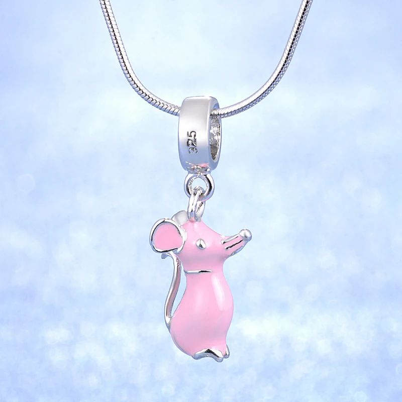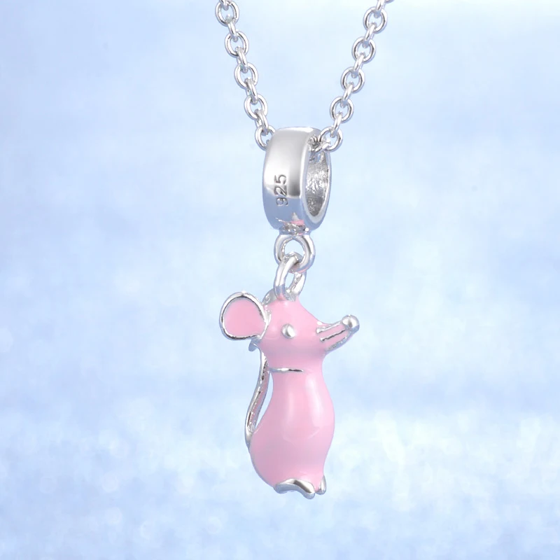 HIGH QUALITY 2018 Original New Design Smart Pink Color Mouse Design Jewelry Enamel Pink Color S925 Sterling Silv