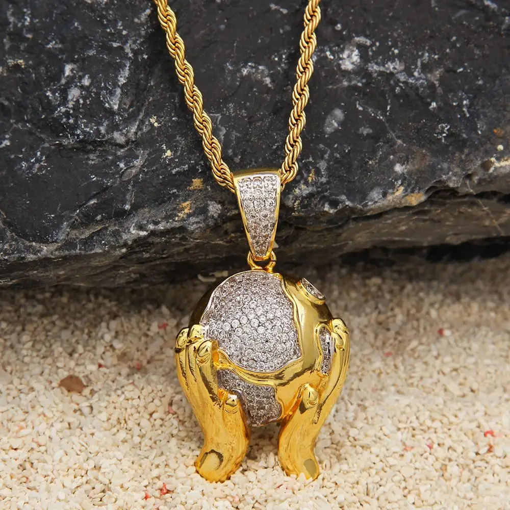 REVIEW TOP SELLER 2019 Hip Hop New Hand Holder Earth Pendant Cubic Zirconia Ice out Men Women Glamour Necklace Jewelr