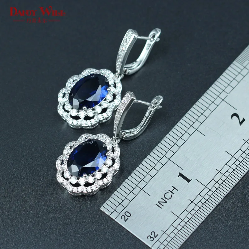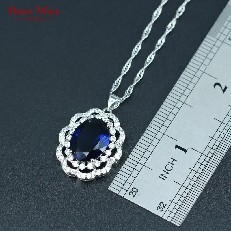 Review DANDY WILL Blue Crystal White 925 Silver Stamp Jewelry Sets For Women Silver Color Necklace/Earring