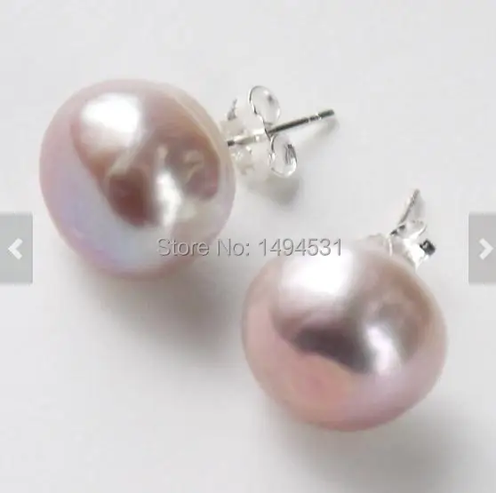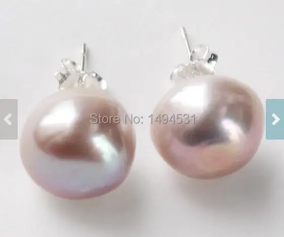 Wholesale Pearl Jewelry Large Lilac Purple Genuine Freshwater Pearl Earrings 12mm 925 Sterling Sil