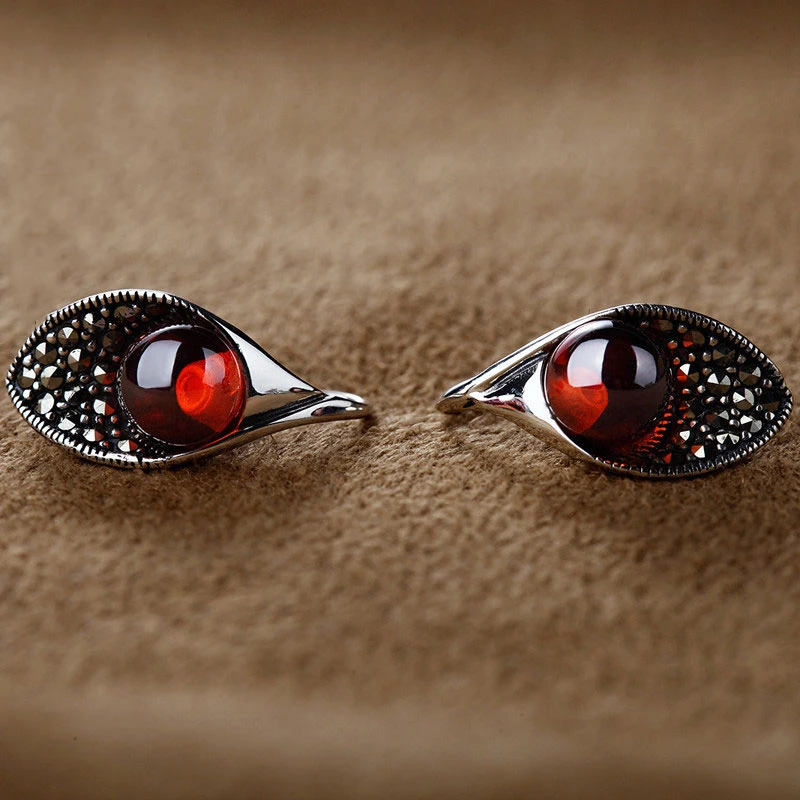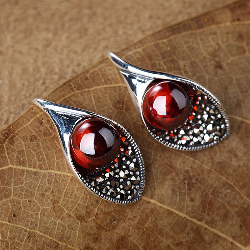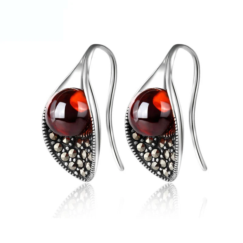 HOT Sale BESTLYBUY S925 Sterling Silver Red Garnet Drop Earring with Zircon for Women Wedding Party Vintage