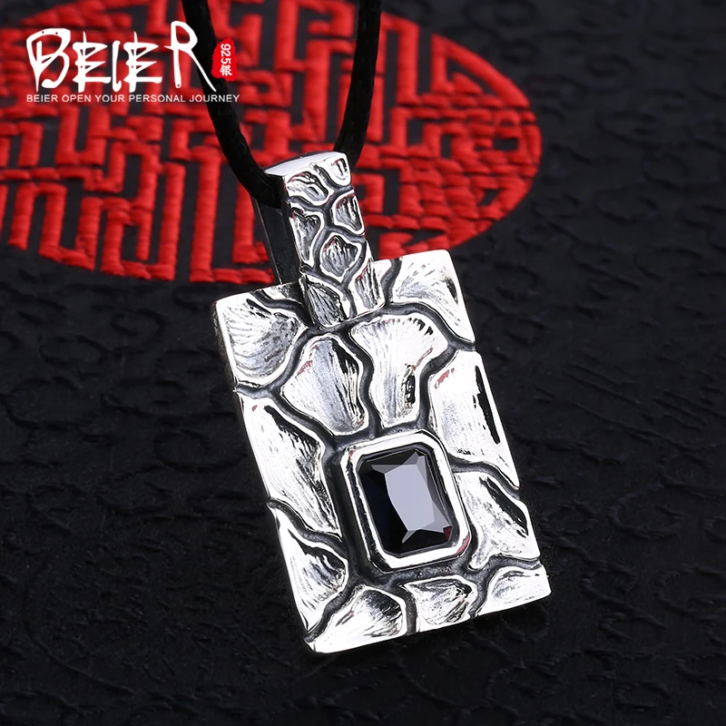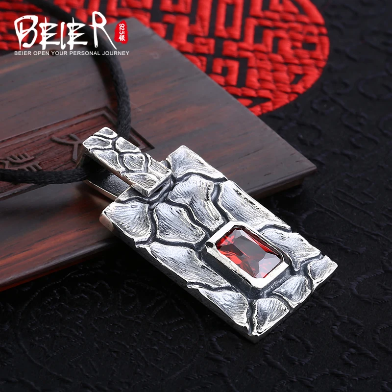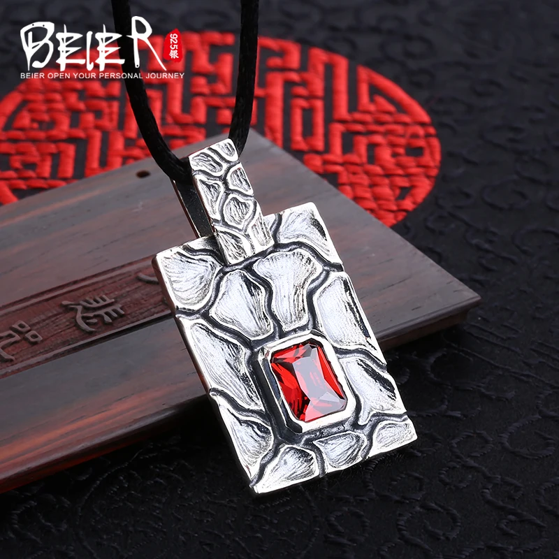 Hot Sale Delicate red and black gem pendant Beier 925 silver sterling pendant necklace free give black rope