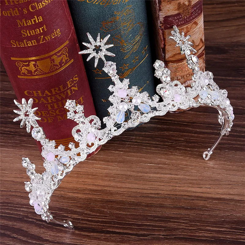 Fashion Star Crown Wedding Baroque Princess Queen King Hair Jewelry Crystal Rhinestones Tiaras And