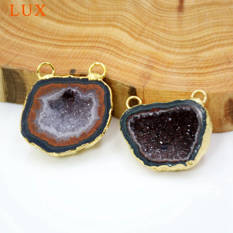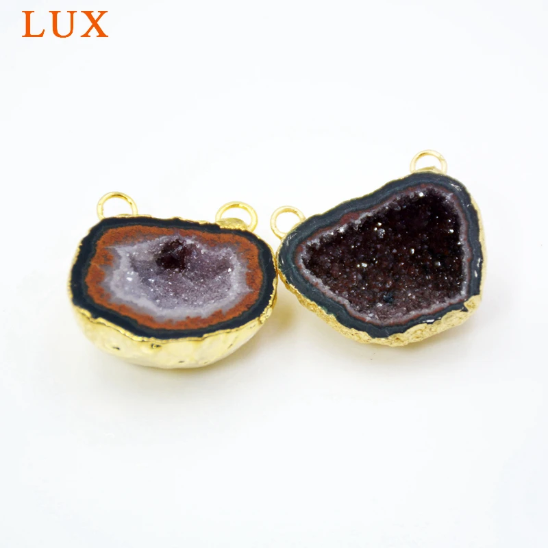 Natural Drusy Agates Geode Pendant shiny druzy jewelry Gold Electroplated Edges double Bail charms