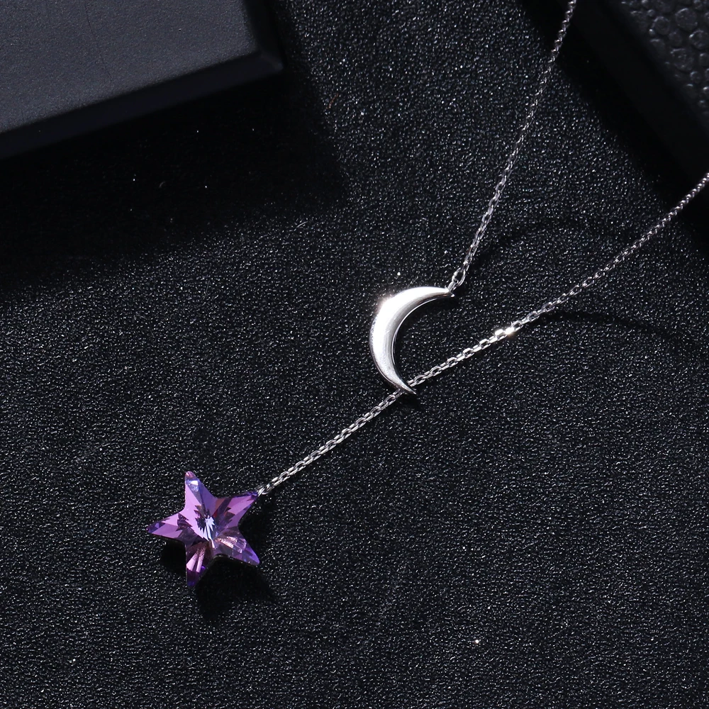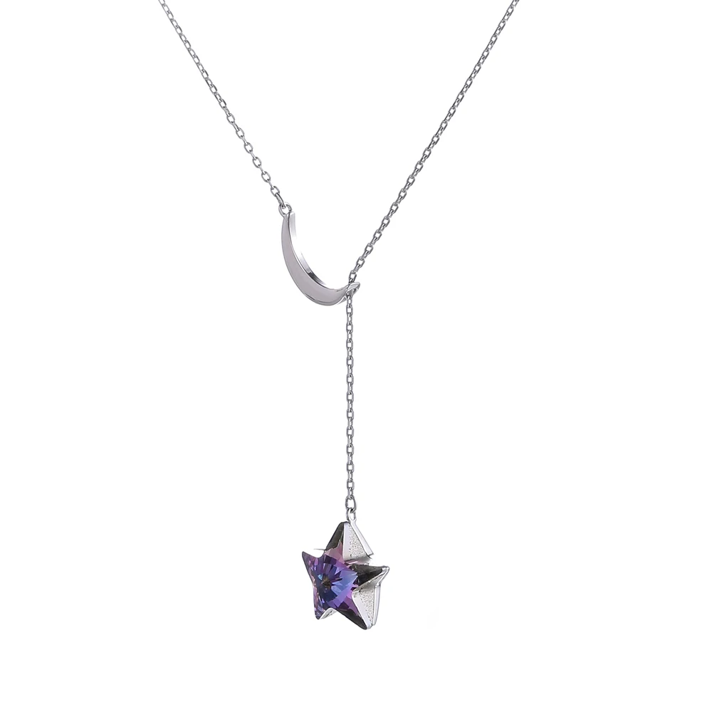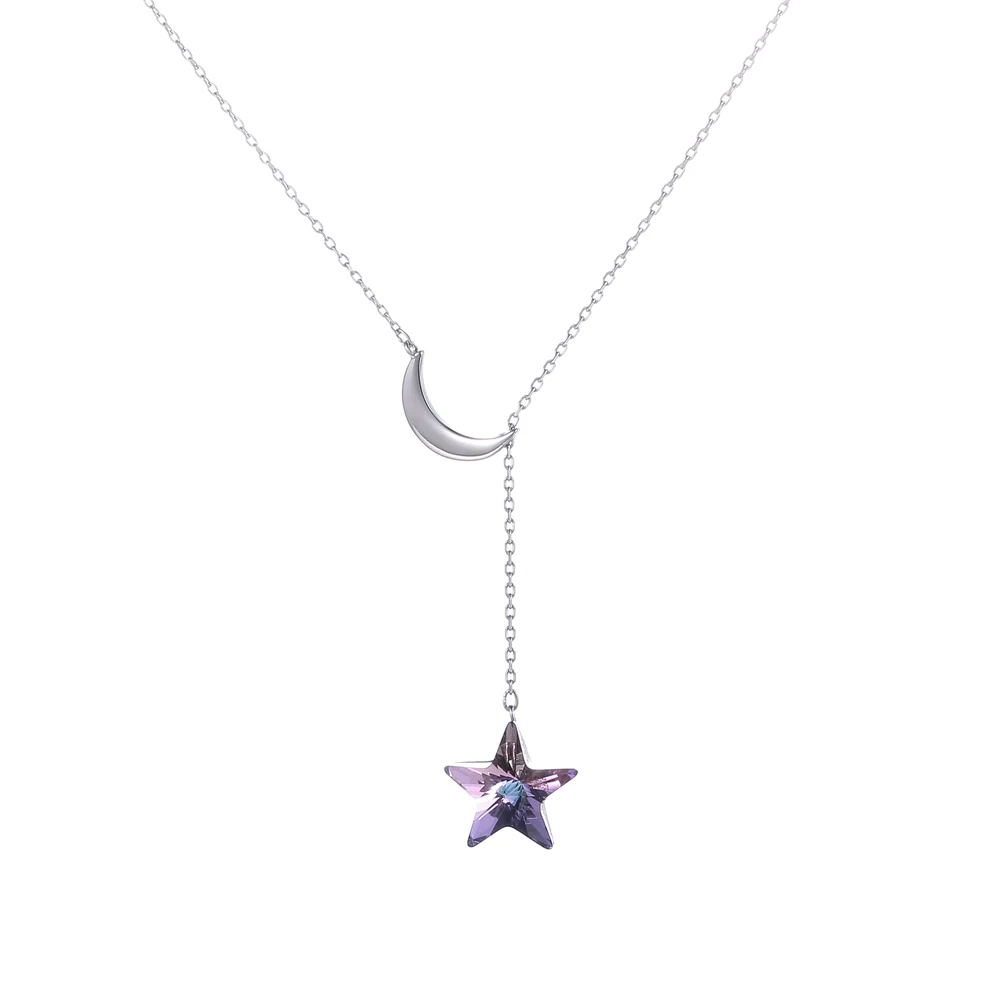 Hot Sale Fashion 925 Sterling Silver Moon Star Bridal Necklace Austrian Crystal Pendant Necklace For Wedding