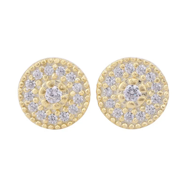 HIGH QUALITY Good Quality Shining Gold Gold 100% 925 Pure Silver Simple CZ Paving Round Stud Earring Romantic We