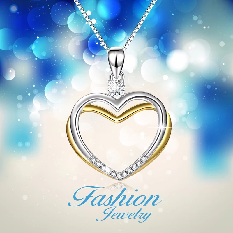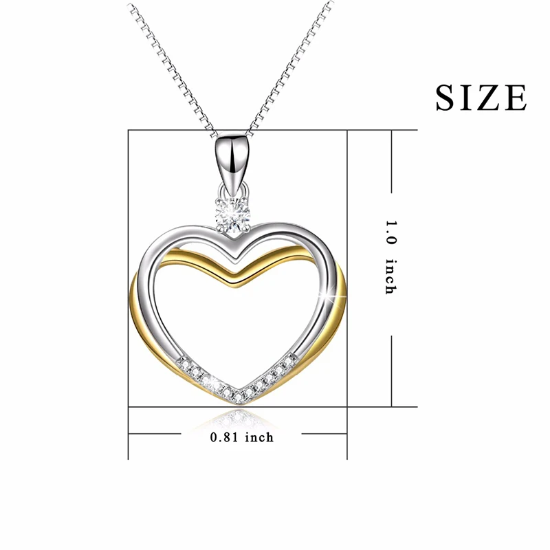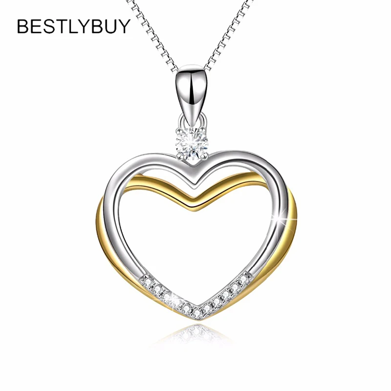BESTLYBUY 100% Real 925 Sterling Silver Double Love Heart Necklaces & Pendants For Women Girls Fine