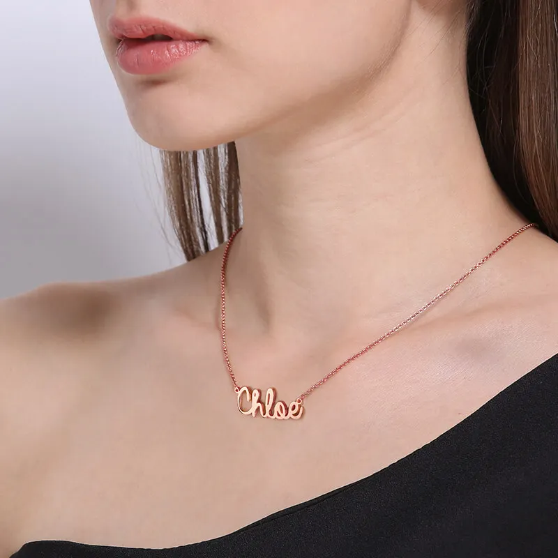 AILIN Personalized Cursive Name Necklace Rose Gold Color Nameplate Necklace Handmade Name Jewelry B