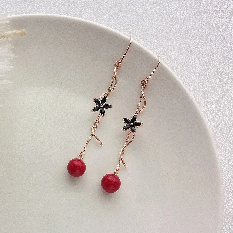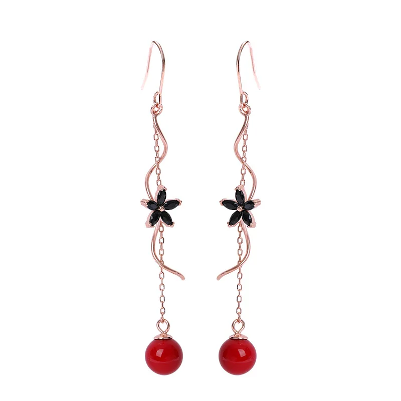 TOP Harlig sterling silver 925 rose gold color long pearl ear hook for women allergy free fashion jewel