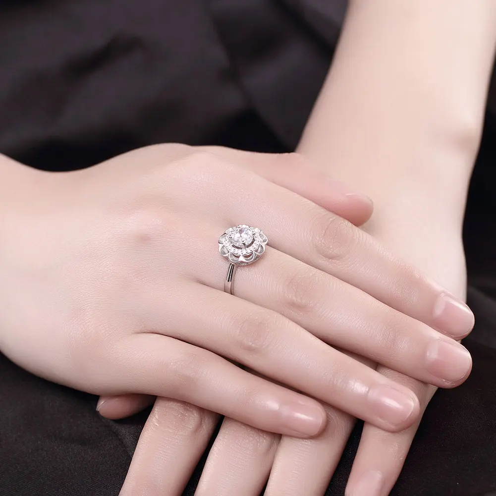 Sizeable Fine Jewelry S925 Sterling Silver Fashion Flower Design Rings For Woman Wedding Engagement