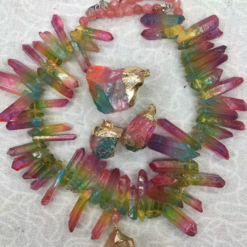 TOP Wholesale Drusy Crystal Pillar Natural Gem Stone Charms Reiki Beads for Women Jewelry Necklaces Bra